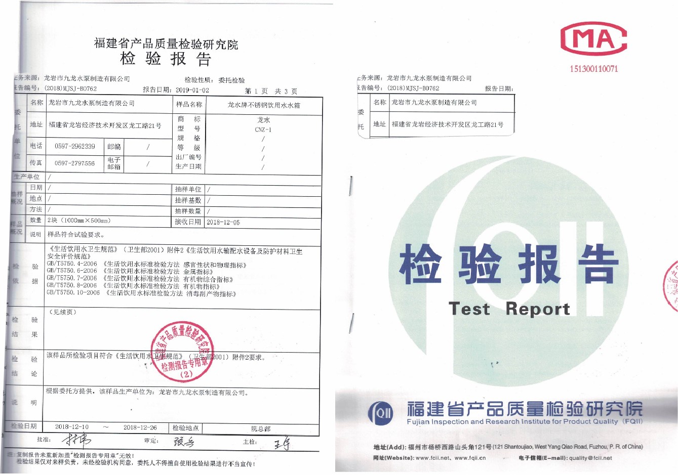 不銹鋼飲用水水箱檢驗(yàn)報(bào)告